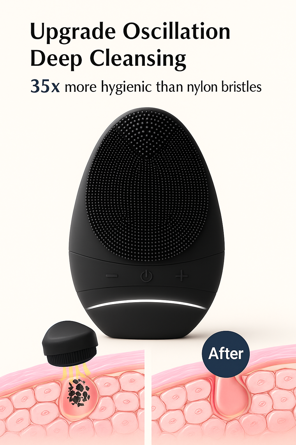 Glowsonic™ uses deep-cleansing silicone bristles + sonic power to tackle the root cause—not just the surface.
